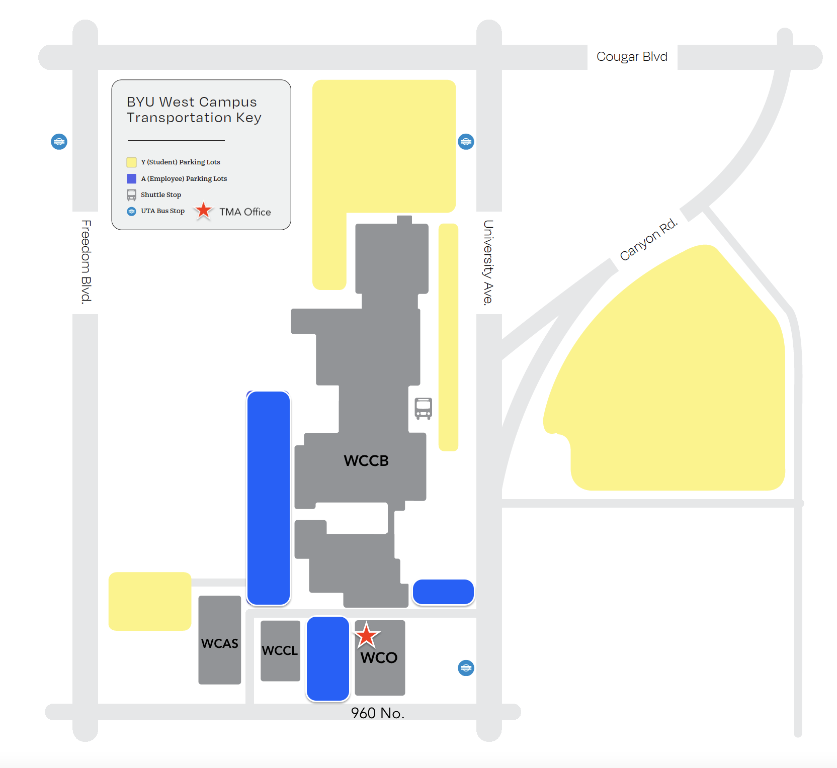 The Department of Theatre & Media Arts is temporarily housed at BYU's West Campus during the construction of the new Arts Building. To find your way around West Campus, please view the map below.